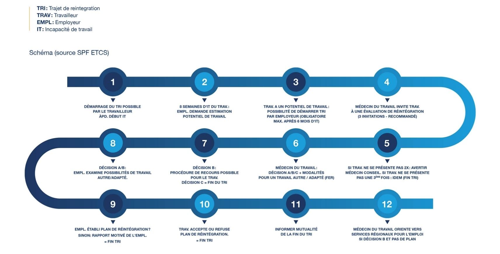 En cas d’accident du travail ou de maladie professionnelle, ce trajet ne peut pas être démarré si l’incapacité de travail temporaire résultant de cet accident du travail ou de cette maladie professionnelle n’a pas encore pris fin, et ce, conformément à la législation sur les accidents du travail et les maladies professionnelles.