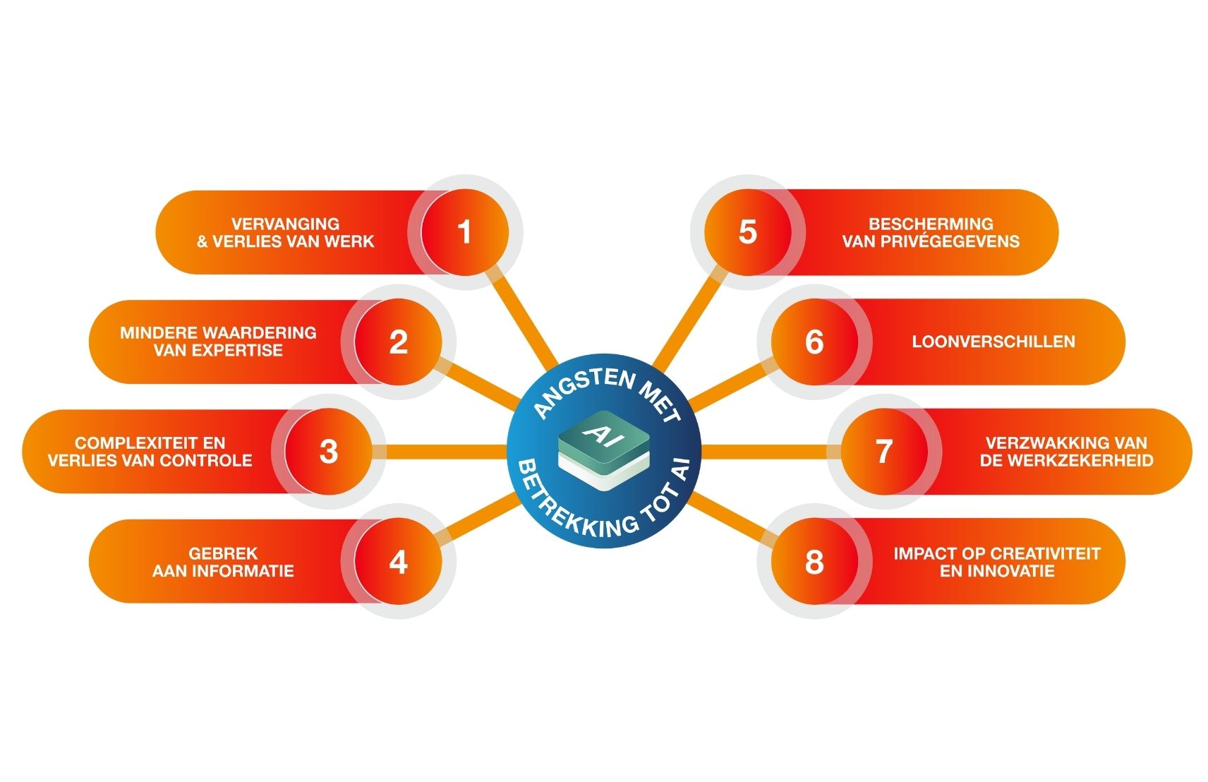 Artificiële intelligentie brengt om verschillende redenen ongerustheid teweeg bij werknemers. Het onbehagen kan verschillende vormen aannemen: